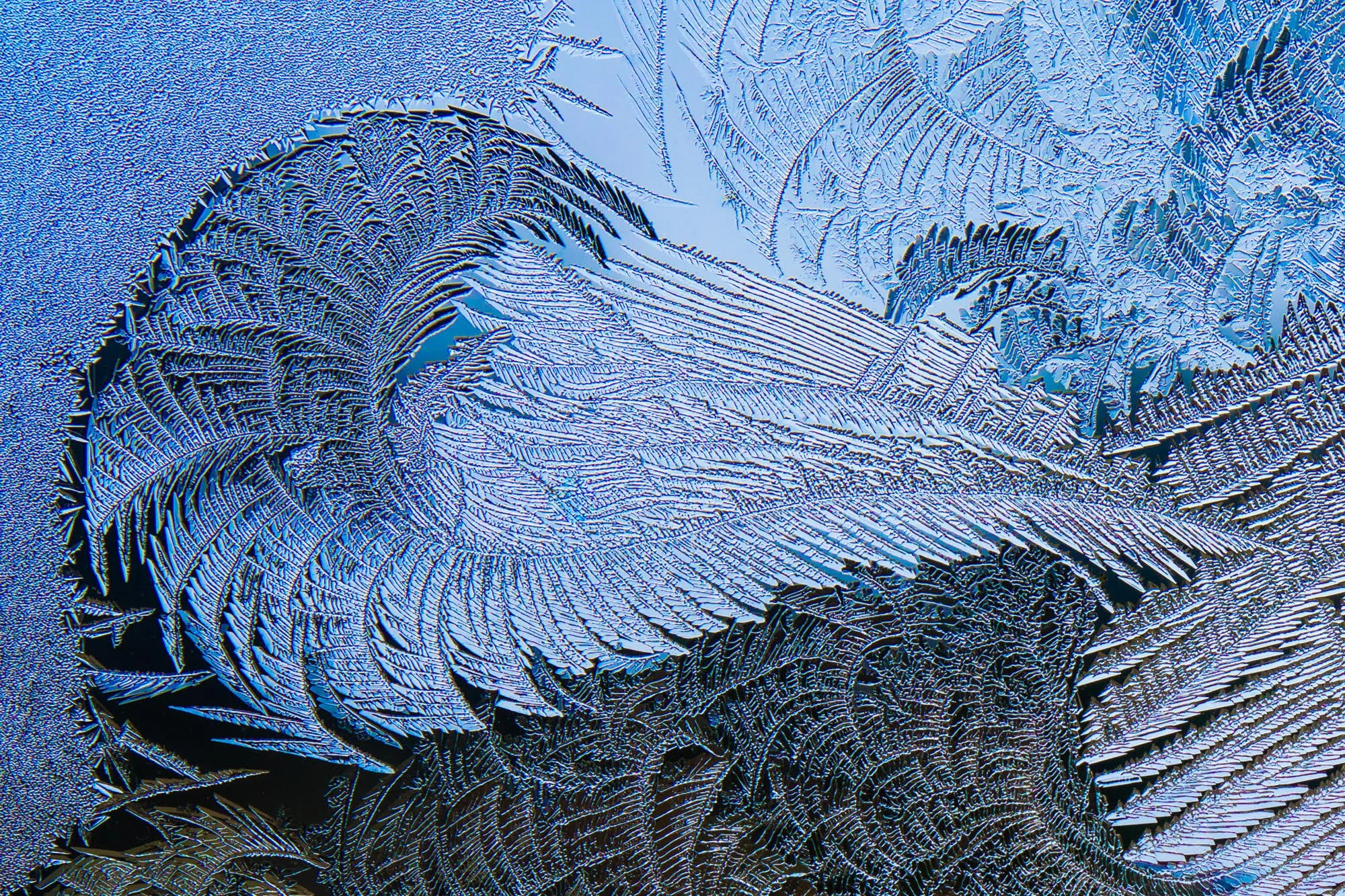 Before the sun wakes and before the coffee’s even gurgled, Elizabeth Root Blackmer is already knee-deep in frost spells and cosmic microdramas, shot through the frozen breath of her Maine farmhouse windows. Frost Crystals, her shimmering series of ephemeral ice glyphs, feels less like photography and more like quiet worship. These aren’t your “ooh, pretty frost” moments. These are glacial mandalas made by weather gods who moonlight as minimalist sculptors. Each dawn becomes a time trial with entropy: hurry, the planet’s already melting. Blackmer doesn’t just document frost; she communes with it. The ambiguity of scale - Is this an inch of window or a NASA flyover? - pulls you in like an ice-flecked koan. And just when you think you’ve got a grip, it melts. She doesn’t photograph frost. She collaborates with it. And she does it before breakfast. Look long enough, and your brain starts to hallucinate meaning. A fern? A constellation? A roadmap to wherever patience lives? Maybe. Or maybe it’s just the universe whispering through a windowpane: I made this for no reason at all. You’re welcome.
